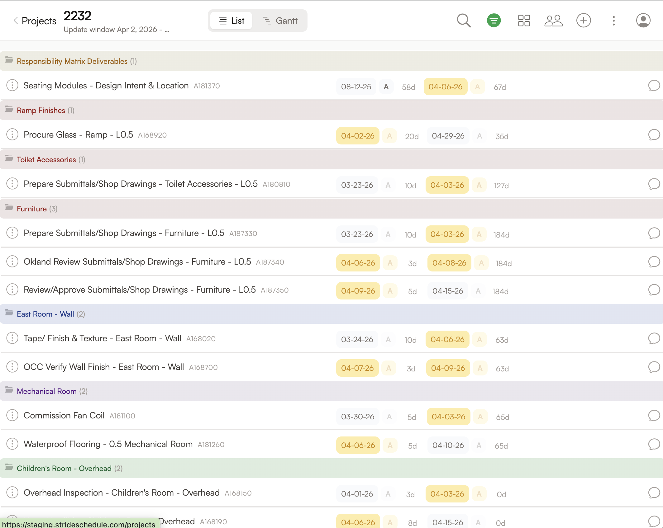 In projects with tens of thousands of activities and lots of contributors, the PDF-email process breaks down quickly. Stride has been battle-tested on mega projects with large teams updating the schedule. It makes update cycles a breeze.